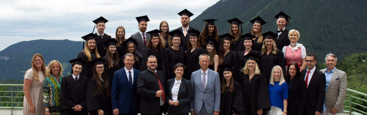 Zwei Jahre dauert die kombinierte Ausbildung aus Traineeprogramm in einem Hotel und komprimierter Schulzeit. Zwei Jahre, die für diese Studierenden eine ganz besondere Herausforderung darstellten. Darauf wiesen auch Direktor Mag. Jürgen Kürner und Studienkoordinator Mag. Gerald Haberl in ihren Ansprachen hin. Lockdowns in den Hotels und Distance-Learning in der Schule belasteten die Studierenden zwar sehr, haben aber auch ihre Flexibilität und ihren Einsatz unter Beweis gestellt!