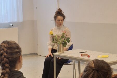 Mit feinem Gespür für Intensität brachte das Landestheater Niederösterreich heute sein Klassenzimmertheater Lottes Werther in den Vortragsraum der Tourismusschulen – eine seltene Gelegenheit,