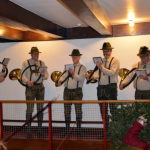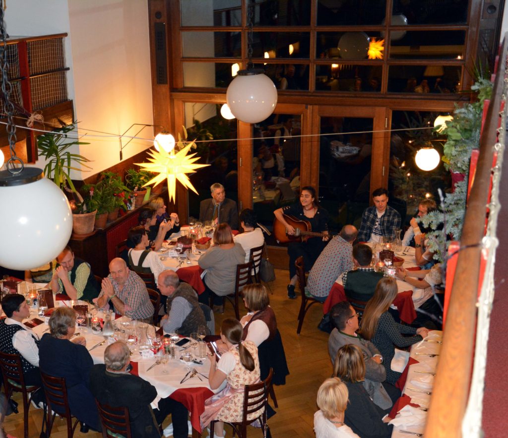 Jagdhornbläser versüßten den Gästen den Aperitif und Isabelle Gmeiner, Schülerin der Projektgruppe, verzauberte die Gäste mit ihrer beeindruckenden Gesangsdarbietung zwischen den köstlichen fünf Gängen. Sie inspirierte die Gäste mit ihrem Charme, sodass diese in das letzte Lied von Isabella einstimmten. Das weihnachtlich geschmückte Looshaus bot dafür einen perfekten Rahmen.