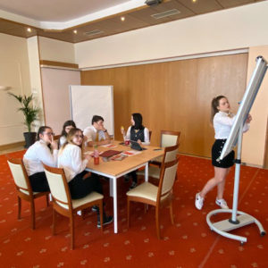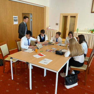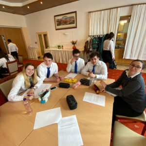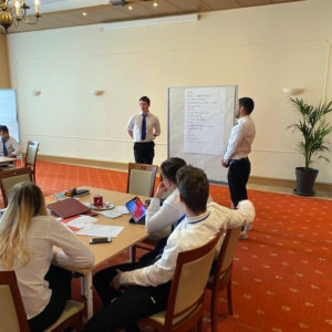 Nach einer ausführlichen Betriebsbesichtigung wurde den Schüler*innen der Seminarraum zur Verfügung gestellt, um im Rahmen eines Stationenbetriebs intensiv an Themen der Praxis zu arbeiten. Aufgeteilt auf vier Gruppen stellte man Pakete für das Hotel zusammen, beantwortete Beschwerden und erstellte eine SWOT-Analyse für den Betrieb. Die Ergebnisse der Gruppenarbeit wurden im Anschluss Herrn Hübner präsentiert. Auf diese Weise bekam er Einblicke in die Sichtweise der Jugend und die Schüler*innen Einblicke in die Themen der Praxis. Die Leistungen der Schüler*innen waren beeindruckend und der Hotelier war von so mancher Idee sehr angetan.