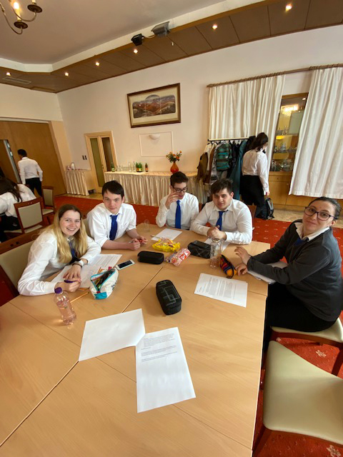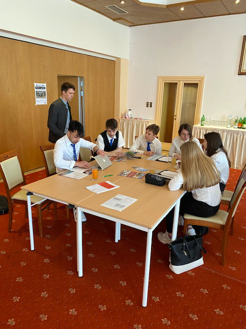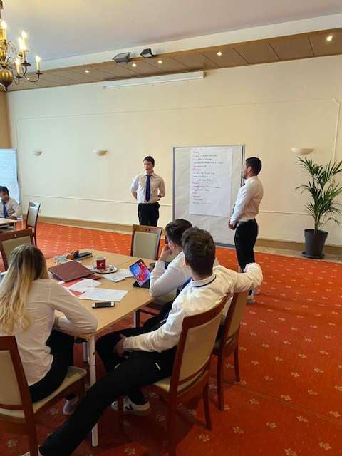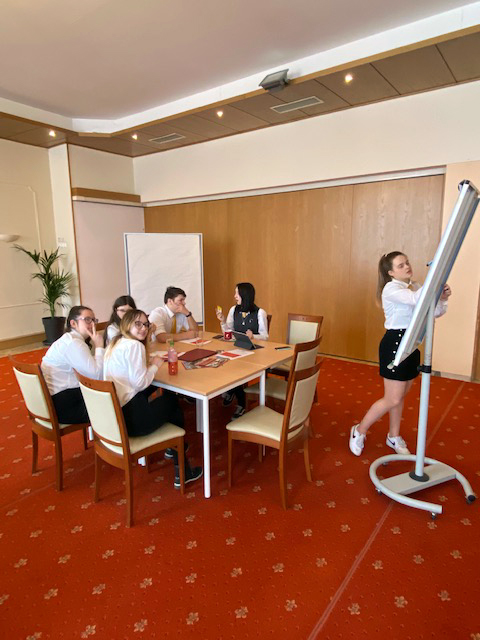 Nach einer ausführlichen Betriebsbesichtigung wurde den Schüler*innen der Seminarraum zur Verfügung gestellt, um im Rahmen eines Stationenbetriebs intensiv an Themen der Praxis zu arbeiten. Aufgeteilt auf vier Gruppen stellte man Pakete für das Hotel zusammen, beantwortete Beschwerden und erstellte eine SWOT-Analyse für den Betrieb. Die Ergebnisse der Gruppenarbeit wurden im Anschluss Herrn Hübner präsentiert. Auf diese Weise bekam er Einblicke in die Sichtweise der Jugend und die Schüler*innen Einblicke in die Themen der Praxis. Die Leistungen der Schüler*innen waren beeindruckend und der Hotelier war von so mancher Idee sehr angetan.
