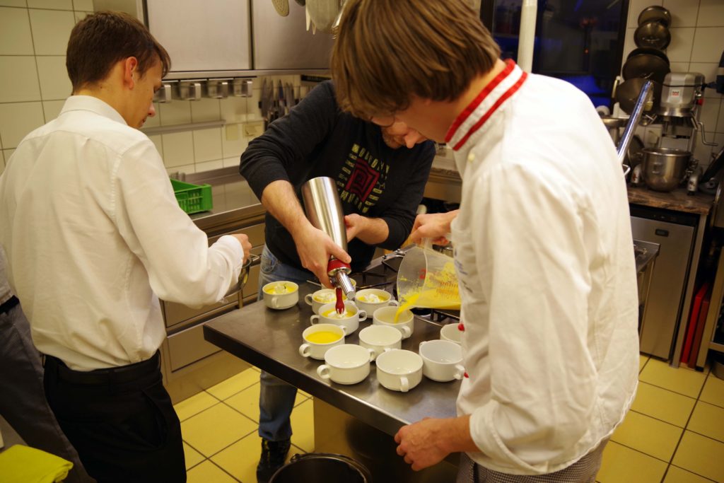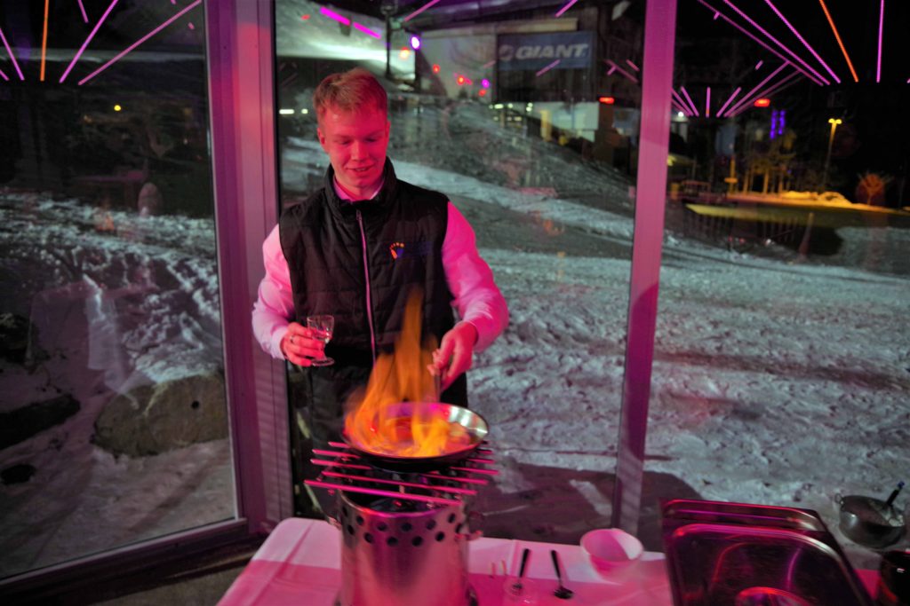 Gestartet wurde mit köstlichen Vorspeisen bei der Schule, es folgte die Kürbis-Karotten-Ingwer-Suppe im Restaurant Löffler, köstliche frische Backwaren und Gruber-Bier bei der Bäckerei Dietmayer, Entenbrust mit Rote-Rüben-Risotto und karamellisierten Karotten im Restaurant Belvedere und schließlich ein geschichteter, feiner Apfelstrudel zum krönenden Abschluss in der Zauberbar an der beleuchteten Hirschenkogel-Abend-Piste.