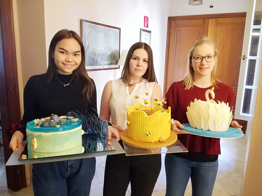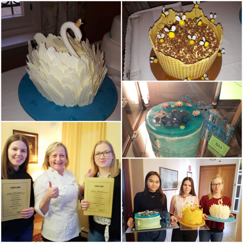 Die Schülerinnen zeigten ihr Können vom Entwerfen der Skizzen, der Zusammenstellung der Rezepturen für die Massen und Cremen bis hin zum Aufbau und der Anwendung der verschiedenen Dekorarten. Sie gewannen damit jeweils einen Platz unter den ersten Drei: