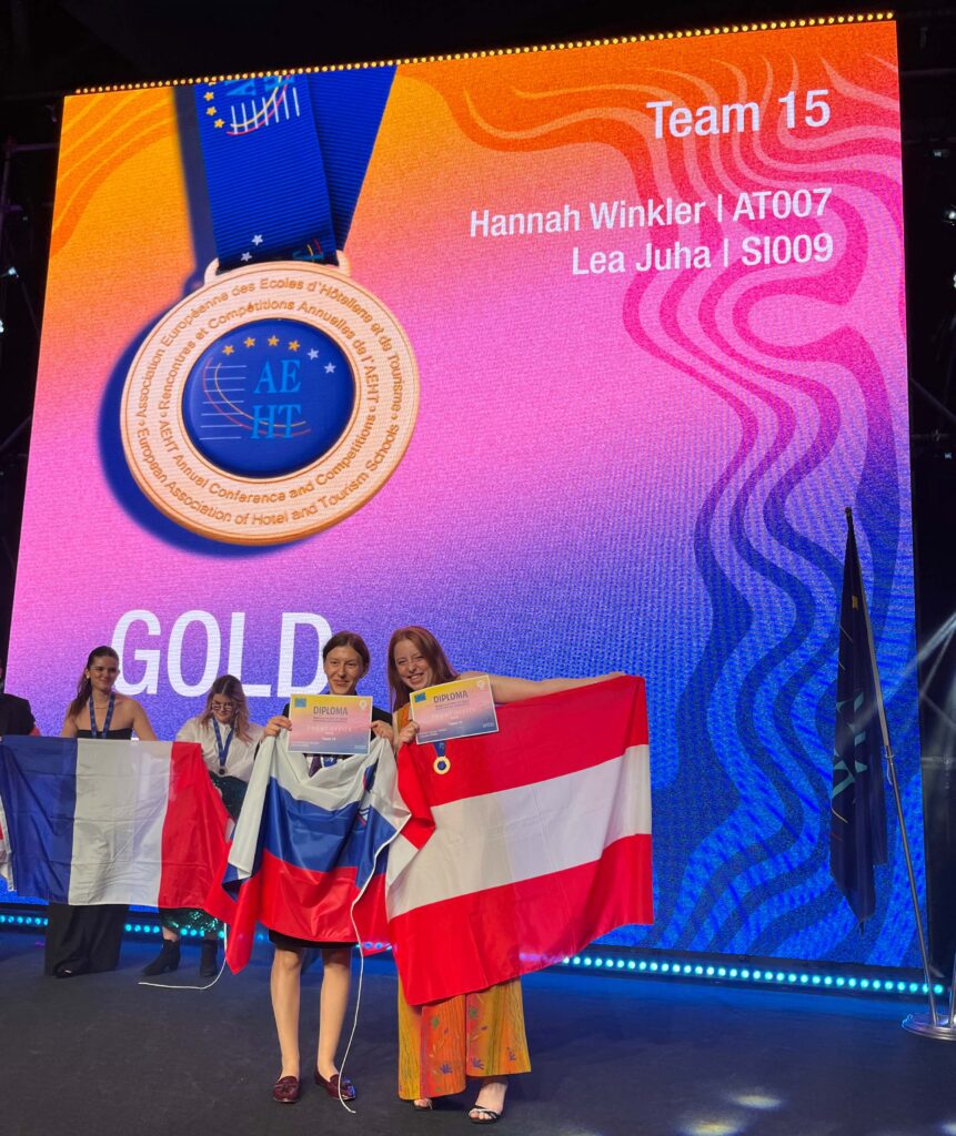 Hannah Winkler – Studierende im dritten Semester des ÖHV-TRAINEE Tourismuskolleg Semmering (Ausbildungsbetrieb Hotel Forsthofgut) – konnte im Wettbewerb „Front Office“ gemeinsam mit ihrer slowenischen Teampartnerin Lea Juha die Goldmedaille erobern.