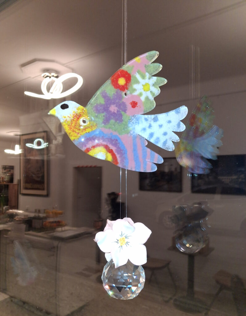 Ebenfalls beeindruckend sind die bunten Glastauben, die im Rahmen einer „Kunst-und-Kultur“-Exkursion nach Neuberg an der Mürz entstanden. Sie stehen für Frieden und Vielfalt und flattern symbolisch an öffentlichen Orten wie dem Renner-Museum in Gloggnitz und dem Hacker Haus in Bad Erlach.