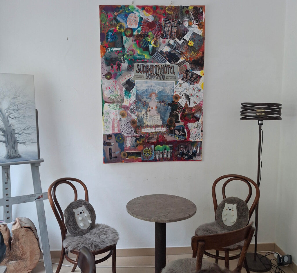 Auch im Sommer bleiben die jungen Weltkulturerbinnen aktiv. So verwandelte sich die Kaffeehalle Semmering in eine lebendige Pop-up-Galerie: Gezeigt wurde das „Triptychon des Lebens“, ein Werk, das mit starken Farben, persönlichen Gedanken und Zitaten aus der Medienberichterstattung Themen von Krieg bis Lebensfreude verknüpft.