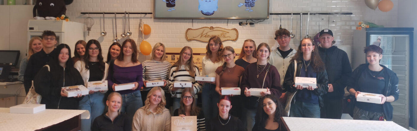 Der Ausflug stand ganz im Zeichen der Schokolade. Nach einer herzlichen Begrüßung erhielten die Schüler:innen einen spannenden Einblick in die Geschichte und Philosophie des Unternehmens, das mit viel Liebe zum Detail und handwerklichem Können seine Produkte herstellt. Besonders beeindruckend war der Blick hinter die Kulissen der Produktion, wo modernste Technik auf traditionelle Rezepturen trifft.
