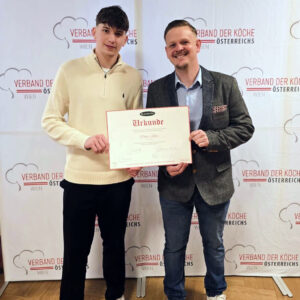 Der Verband der Wiener Köch:innen veranstaltete zu Ehren von Ewald Plachutta den Wettbewerb „Rindfleischkaiser 2025“. Die Tourismusschulen Semmering waren mit Peter Jeller (4 BHL) im Finale der TOP 15 vertreten. Über 60 verschiedene Rezepte wurden eingereicht; dabei überzeugte Peter mit seinem kreativen und außergewöhnlichen Rezept. Die hochkarätige Fachjury bestand aus Johann Lafer, Véronique Witzigmann, Konrad Zellner, Harald Fargel, Bernhard Degen, Robert Letz und Heinz Hanner.