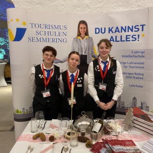 Während der drei Messetage unterstützten die Schüler:innen aktiv an den Reisebüro-Countern, wo sie Kund:innen betreuten und erste Erfahrungen im direkten Verkauf und in der Beratung sammelten. Darüber hinaus waren sie für die Begrüßung der Gäste, diverse Serviertätigkeiten sowie das Mixen von Cocktails verantwortlich und konnten dabei ihr praktisches Können unter Beweis stellen. Ein besonderes Highlight war der eigene Stand der Tourismusschule Semmering, an dem die Schüler:innen ihre Schule professionell repräsentierten und mit Besucher:innen ins Gespräch kamen.