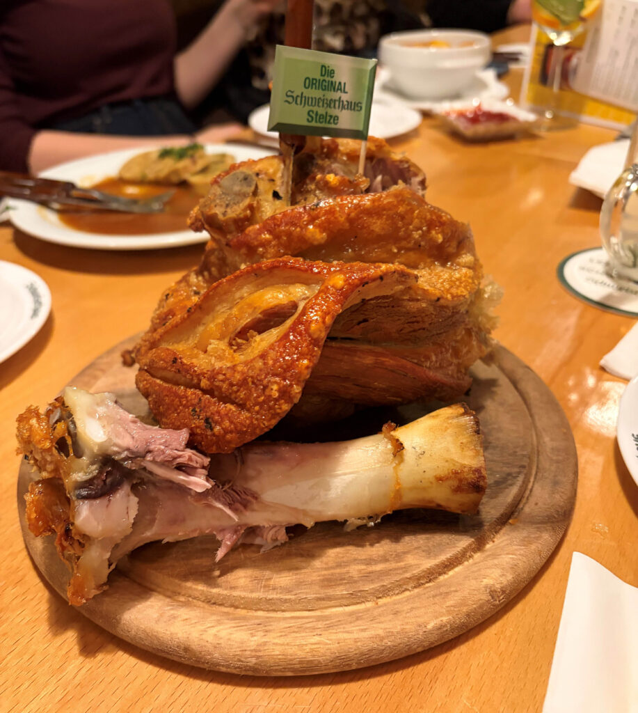 Auch kulinarisch hatte die Exkursion viel zu bieten. Im veganen Restaurant Lara konnten die Schülerinnen und Schüler neue Geschmackserlebnisse entdecken und sich von pflanzlicher Küche überzeugen lassen. Ein weiteres Highlight war das Frühstück im NENI am Prater, das nicht nur mit seinen Speisen, sondern auch mit einem beeindruckenden Blick über den Prater begeisterte. Ein Besuch im traditionellen Schweizerhaus rundete das kulinarische Programm ab und vermittelte einen Eindruck der Wiener Wirtshauskultur.